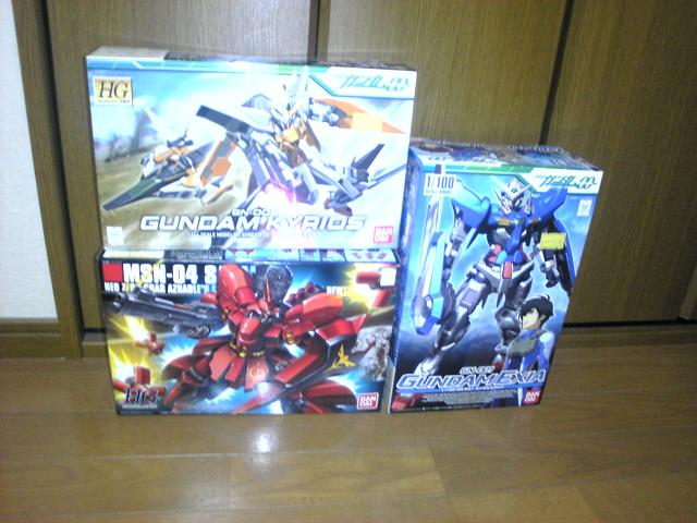 実はまだデュナメスのMGを作っていないのでデュナメスMG、サザビーHGを作ってからエクシアとキュリオスは次のガンダム会に持っていこうと思います。ニューガンダムは予算オーバーでしたので今回は見送り…。次回ヤクト・ドーガの二体と一緒に買う予定です。